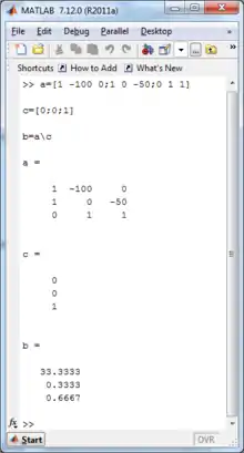 - Create two matrices, one square and the other a column with the numbers that are on the right of the equal sign
