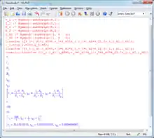 MuPAD is then given the values of the constants and asked to re-evaluate the linear equations. This generates the symbolic solution in terms of fractions and symbols like .