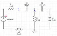R1 :=1000;C1 :=.0001;C2 :=.0002;R3 := 2000;L1 := .001;L2 := .001; f := (s*L2 + 1/(s*C2))/(R3 + s*L2 + 1/(s*C2))*1/(R1 + 1/(s*C1) + s*L1 + 1/(1/R3 + 1/(s*L2 + 1/(s*C2)))): factor(f);