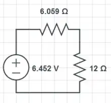Using the Thevenin equivalent (and voltage divider) to compute voltage across the 12 ohm resistor: