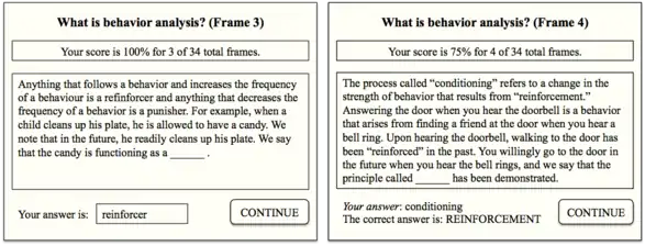 - a method of instruction that presents the learner with small pieces of information, followed by questions that allow the learner to either progress or loop back to the informational text