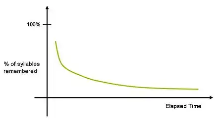 In 1885 Herrmann Ebbinghaus did several self-experiments to research human forgetting. He memorized a list of meaningless syllables, like “WUB” and “ZOF”, and tried to recall as many as possible after certain intervals of time for several weeks. He found out that forgetting can be described with an almost logarithmic curve, the so called forgetting curve which you can see on the left.