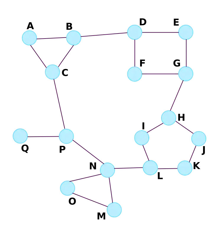 Consider a network with a graph as shown below. There is only one link between D and the other parts of the network.