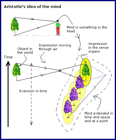 The naive realist idea of perception involves a point eye looking at a geometrical form. But the physics is different; there are two eyes with sometimes very different images in each. Light is refracted over the entire area of the cornea and directed over the entire area of the retina - there is no 'point eye'.