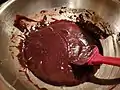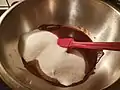- Stir flour, baking powder, and salt into chocolate mixture.
