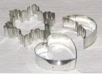 A cookie cutter is a tool used to stamp out cookie dough in a particular shape. They are usually made from metal or plastic and come in a wide variety of shapes and sizes.