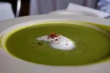 Crème fraiche is a soured cream containing about 28% butterfat and with a pH of around 4.5. It is soured with bacterial culture, but is thicker, and less sour than sour cream. Crème fraiche is produced by a process similar to that of sour cream, with the exception that no ingredients are added. Each processing step requires attention to maintain high viscosity. It can be made at home by adding a small amount of cultured buttermilk or sour cream to heavy cream, and allowing it to stand for several hours at room temperature until the bacterial cultures act on the cream.