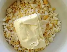 - Chop the eggs into small pieces (larger pieces of egg white often fail to mix with butter).