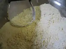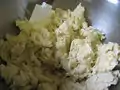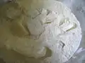 - Add cold water; cut the water into the flour-butter mixture with the edge of a rubber spatula until it is evenly moistened and will hold together when pressed.