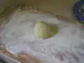 - Form the dough into a ball with your hands, kneading in any loose flour. This should be done as quickly as possible to avoid melting the butter in the dough.