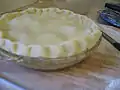 In contrast to bread, pie crust and other pastries should be made in a way that minimizes the development of gluten. Once the water has been added, the dough should be worked as little as possible, to minimize toughness in the finished crust.