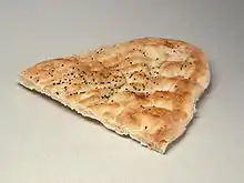 Flatbread is a type of bread that is cooked flat, typically on a flat pan or other flat surface. Flatbreads are featured in many different cuisines around the world, and can be made from a wide range of cereals and other starchy foods.