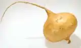 Jicama looks similar to a turnip or a large radish, and it can be used as an alternative to the water chestnut. Its skin is thin and can be gray, tan, or brown in color. Additionally, it has a short root and contains white flesh. The skin is typically peeled before eating it raw. Raw jicama tastes similar to a pear or apple. It also does not discolor when exposed to the open air for awhile. Because of this, raw jicama is often used as an accompaniment to raw vegetable platters. When jicama is used in cooking it tends to take on the flavors of the ingredients that it is being combined with. Therefore, jicama is a nice complement to various stir-fry dishes because it blends well with many vegetables and seasonings.