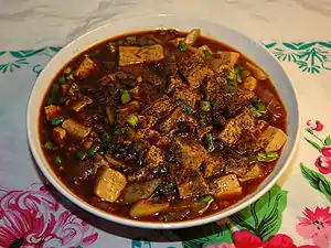 Mápó dòufu (麻婆豆腐) is a classic spicy tofu and meat dish from Szechuan province in China. It is a very flavourful, easy to prepare, and spicy dish.
