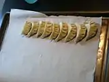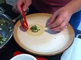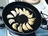 - Step 2: Brush a gyoza wrapper with a little water around the edges.