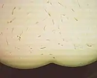 Provolone cheese is a cow's milk cheese from southren Italy. Provlone, like mozzarella, is a plasic curd cheese. The curd is mixed with heated whey and kneaded into a smooth semi soft consistency.