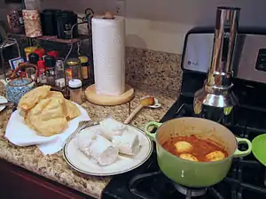Puttu is a breakfast dish of Kerala. The main ingredients are rice flour and coconut. It is usually eaten with steamed bananas or Kadala Curry (chickpea curry) or Chicken Curry or boiled green gram (moong) and pappad.