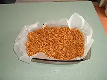 - Press the mixture into a lined tin (buttered)