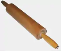 A rolling pin is a long cylinder-shaped tool, often with handles on either end, used to roll out dough. Rolling pins can be made from wood, plastic, ceramic or marble.