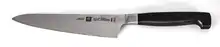 A carving knife is a large knife (between 20 cm and 38 cm (8 and 15 inches)) that is used to slice thin cuts of meat, including poultry, roasts, hams, and other large cooked meats. A carving knife is much thinner than a chef's knife (particularly at the spine), enabling it to carve thinner, more precise slices.
