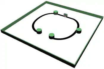 You should observe the world depicted on the figure. A line is painted on the ground. It has a ”C” shape. Some obstacles are dispersed along the line.