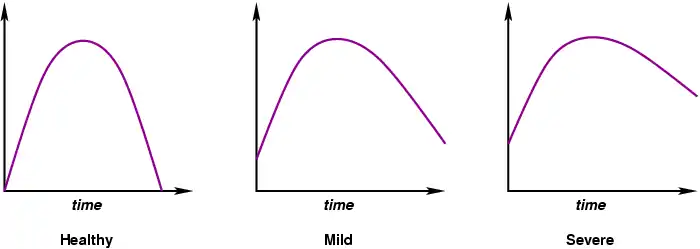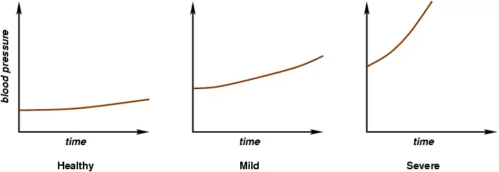 My suggested test also relies on blood pressure, but adds a dynamic measure of that variable. In short, the idea is to build a graph showing how blood pressure progresses with time as the test subject performs a high-concentration activity. Figure 10 shows what one would be likely to expect from a healthy individual, a mildly depressed one, and one more deeply depressed.