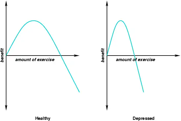 This is unfortunately not widely known, but even healthy individuals who exercise too much can develop the symptoms of a depression. This is sometimes referred to as the athletic overtraining syndrome , and by now you should have understood the basic mechanism of why it arises.