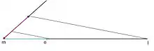 4) Construct a line at the end of line m parallel to the previous construction line made in step 3, extend the line l if needed.