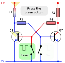When a high input is applied to the Set line of an SR latch, the Q output goes high (and Q low). The feedback mechanism, however, means that the Q output will remain high, even when the S input goes low again. This is how the latch serves as a memory device. Conversely, a high input on the Reset line will drive the Q output low (and Q high), effectively resetting the latch's "memory". When both inputs are low, the latch "latches" – it remains in its previously set or reset state.