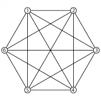 Some graphs occur frequently enough in graph theory that they deserve special mention. One such graphs is the complete graph on n vertices, often denoted by Kn. This graph consists of n vertices, with each vertex connected to every other vertex, and every pair of vertices joined by exactly one edge. Another such graph is the cycle graph on n vertices, for n at least 3. This graph is denoted Cn and defined by V := {1,2,..,n} and E := {{1,2},{2,3}, ..., {n-1,n},{n,1}}. Even easier is the null graph on n vertices, denoted Nn; it has n vertices and no edges! Note that N1 = K1 and C3 = K3.