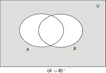 (b) | (A ' ∩ U) ' | = (A' ) ' ∪ U' | De Morgan | |