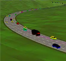Disim is a lightweight microscopic highway traffic simulator that enables the emulation of a complete traffic over several kilometers. It allows the definition of a specific road network under variable entry rates and road conditions. Disim also offers the possibility to add road sensors to measure the density, speed and traffic flow and log this data. Variable speed limits as well as ramp metering are supported natively.
