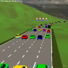 Disim is distributed with a standard driver model: the Intelligent Driver Model (IDM) of Helbing [1] combined with the Minimizing Overall Braking decelerations Induced by Lane changes (MOBIL) model of Treiber [2]. The IDM is a longitudinal model that set the acceleration depending only the leading vehicle and the MOBIL model looks at the 5 current neighbors (leading, leading on the left lane, trailing on the left, leading on the right and trailing on the right). The current implementation of Disim only allows the car controller to access information about the 6 direct neighbors if they are within a given radius of 100 meters. Please do not hesitate to drop me line on Sourceforge if you have other needs or feel free to modify the core source code (as it is hopefully well documented under Doxygen).