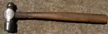 - ball-peen hammer (A)-- typically the faces of these have a slightly smaller diameter and they are quickly recognized by the relatively ball shaped peen opposite the face. Generally these are easier to come by and come in lighter weights than cross peen hammers. Some refer to these as "engineer's hammers". We aren't here to argue jargon. If it's got the right shape it doesn't matter what it's called.