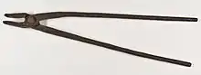 Also, some blacksmith's tongs are available if you don't want to make your own. Scout garage sales and the like for tools that can be used as tongs; nippers, pliers, shears, etc. can often be adapted, even when rusty or worn down past the point of utility in their original role. You'll learn to bend these to your will, adapting them for the particular job at hand.