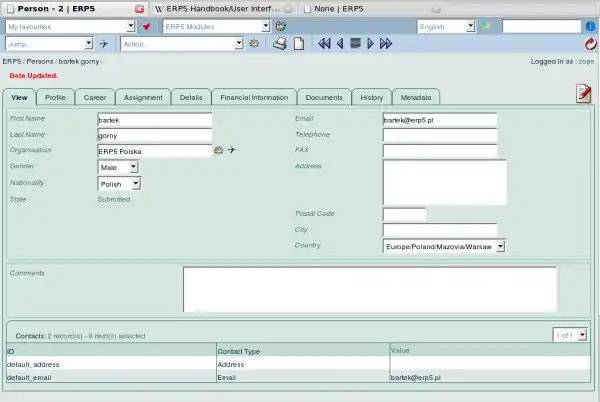 Although based on a "thin client", ERP5 is a rich user interface which offers many functionalities. What is important is that the interface is uniform throughout the system, so if you know how to use Person module, you don't have to learn anything new when it comes to doing sales or accounting.