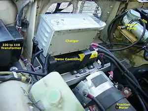Branded products may be illustrated where such are commonly used in EV conversions. This should not be considered to be promotional or an endorsement, which otherwise might be considered to be in violation of Wikibooks policy.