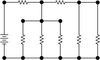 In Figure 3 (a), if the three resistors in the outer loop of the circuit are R1, R2 and R3 and the other resistor is R4. It is simpler to see what is going on if we combine R2 and R3 into their series equivalent resistance . It is clear now that the equivalent resistance is R1 in series with the parallel combination of and R4. If we want to calculate the voltage across the parallel combination of R4 and then we just use voltage divider.