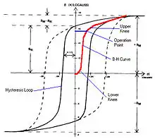 - B is the peak magnetic flux density in gauss (volt seconds per square centimeter), or lines (maxwells) per square inch ,