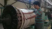 The wire generally used in small transformer coils is magnet wire. Magnet wire is generally a solid copper wire with an insulating jacket such as varnish. Other wires such as litz wire are common use for r.f. transformers. Large power transformers use stranded wire, which may be rectangular in cross-section, with periodic transpositions in the strands to equalize current and reduce loss. Windings for large currents may be made in strip form, or have a square or rectangular cross section. Aluminum is sometimes used in power transformer windings to reduce costs. The connections on smaller transformers are soldered, but larger transformer connections, especially ones handling high current, are brazed or welded.
