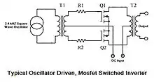 Transformers used in DC (Direct Current) circuits, generally consist of switching transformers in inverter type power supplies. These are widely used to convert 12 VDC to 115-120 VAC. However, the waveform produced is either a square wave, or a modified square wave. A modified square wave, is in reality, an attempt to create something similar to a sine wave, and it has a stair-step look on an oscilloscope. It is created by an electronic circuit that controls and steps the voltage level of the switching semiconductors output throughout one cycle.