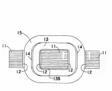 A smaller coil with few layers is always recommended. A coil with a large number of layers will run hotter than one with a few. Each winding has a "hot spot" which is always located mid-way at its center. If the winding has a number of layers, the heat will increase at this hot spot. The hot spot is almost always where the winding will fail due to heat. The heat from each winding has to travel through each layer and is dissipated from the outside of the coil. This means that the winding, (13 on drawing), closer to the core, (12 on drawing), will be hotter than the outer ones. Since this is the case, and most of the time the winding closest to the core is the primary, the largest wire that will fit for the current drawn should be used. The exception to having the primary here is using a winding with very small diameter wire. Since the coil will expand due to heat, a small wire coil on the outside could break because of the expansion. Being at the core, it would expand less and not break the wire. Most small bias windings, rated at a few milliamperes, and used in vacuum tube circuits are wound in this manner. A good rule of thumb is to use 1000 circular mills per ampere for the wire selection, when designing the primary winding. (in metric units half a square mm per amp) This value should be reduced for small transformers wound with fine wire - for example a 10VA transformer may have a 55C rise in temperature at half this value (one square mm per amp), while a 100VA transformer could withstand 750 circular mills per ampere ( ~0.7 square mm per amp) for a similar temperature rise.