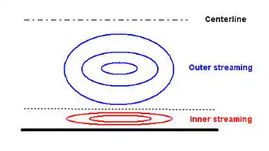 - Inner boundary-layer streaming: The study of inner boundary layer streaming was developed by Schlichting, who investigated an incompressible oscillating flow over a flat plate and calculated the two-dimensional streaming field inside the boundary layer. Figure 1 shows the inner and outer streaming in a channel. The length of such a cell is a quarter of the wave length.Figure 1: Schematic diagram of inner and outer streaming cells