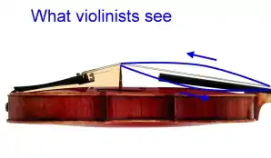 The primary role of the bridge is to transform the motion of vibrating strings into periodic driving forces by its feet to the top plate of the violin body. The configuration of the bridge can be referred to the figure. The bridge stands on the belly between f holes, which have two primary functions: One is to connect the air inside the body with outside air, and the other one is to make the belly between f holes move more easily than other parts of the body. The fundamental frequency of a violin bridge was found to be around 3000 Hz when it is on a rigid support, and it is an effective energy-transmitting medium to transmit the energy from the string to body at frequencies from 1 kHz to 4 kHz, which is in the range of keen sensitivity of human hearing. If a violinist desires a darker sound from the violin, he or she may attach a mute to the top of the bridge. The mute is actually an additional mass which reduces the fundamental frequency of the bridge. As a result, the sound at higher frequencies is diminished since the force transferred to the body has been decreased. On the other hand, the fundamental frequency of the bridge can be raised by attaching an additional stiffness in the form of tiny wedges, and the sound at higher frequencies will be amplified accordingly.