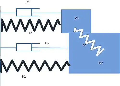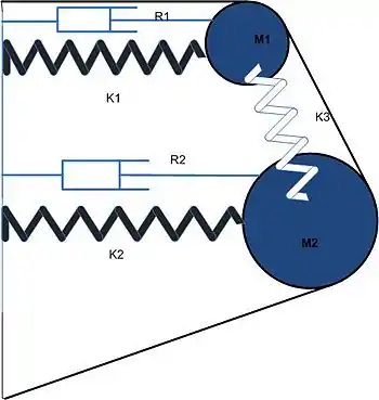 The basic two mass model is shown in Figure.3 and the two mass model of vocal fold is shown in Figure.4.