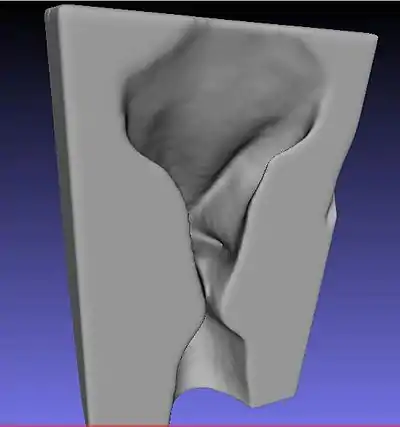 The organ has two main functions; to act as the last protector of the airway, and to act as a sound source for voice. This page focuses on the latter function. In the following image, the cross section of vocal cord is shown. This three dimensional geometry is made using CT scan data.