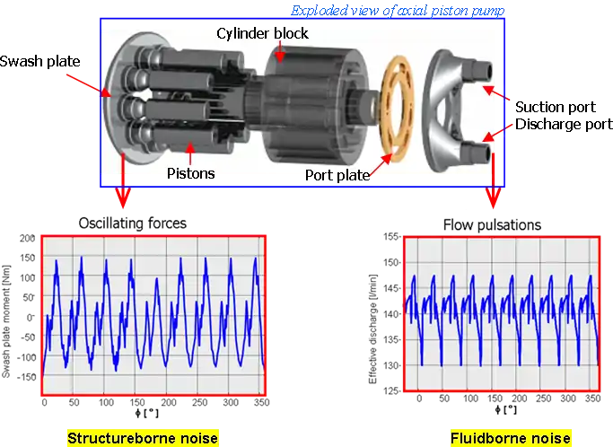 The noise generation in an axial piston pump can be classifeid under two categories: