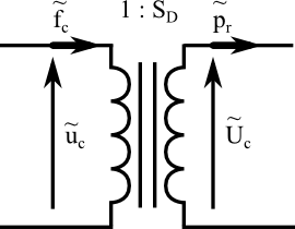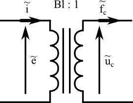 When the loudspeaker is fed an electrical signal, the voice coil and magnet convert current to force. Similarly, voltage is related to the velocity. This relationship between the electrical side and the mechanical side can be modeled by a transformer.
