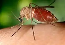 Mosquitos are known particullarly for spreading disease. Mosquitos, like other flies, undergo compete metamorphosis. Eggs, larvae, and pupae develop in water, but the adult is terrestrial. The larvae also develop in three instars. The pupae then float to the surface of the body of water, so that the adults can emerge into the air.
