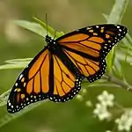The Monarch butterfly is common in North America, as well as New Zealand and Australia. It is one of the few milkweed butterflies in North America. As larva, the monarch feeds on milkweed, which is poisonous. This poison persists in the monarch as an adult, which provides it protection from many predators. This is so successful, that Limenitis archippus (in the same family, but in a different subfamily) mimics the monarch so that it is not eaten by predators.